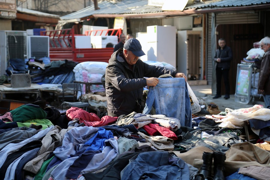 A man shops at a second-hand goods market in Ankara, Türkiye, Dec. 6, 2022. Buying and selling second-hand goods has become popular in Türkiye as consumers are looking for affordable used products amid the country's economic woes and soaring inflation. (Photo by Mustafa Kaya/Xinhua)