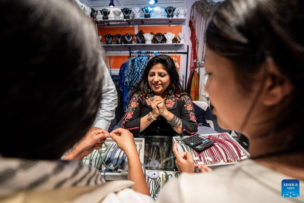 An exhibitor introduces products from Pakistan at the seventh China-South Asia Expo in Kunming, southwest China's Yunnan Province, Aug. 16, 2023. The seventh China-South Asia Expo kicked off Wednesday in Kunming.
