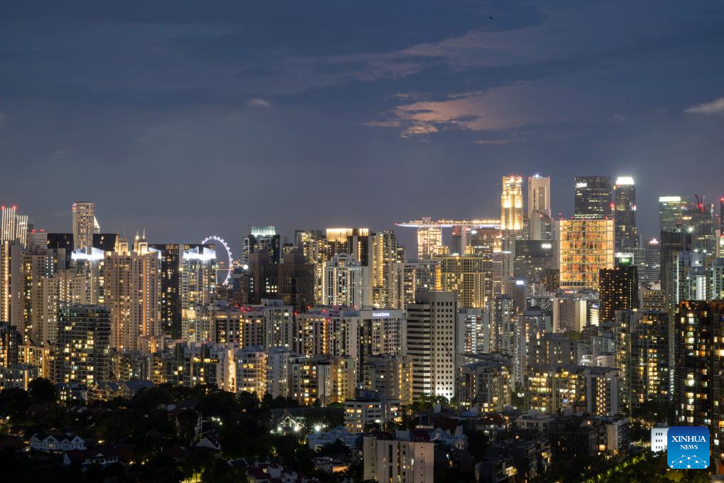 This photo taken on April 13, 2025 shows the city skyline of Singapore. Singapore's economy expanded by 3.8 percent year-on-year in the first quarter of 2025, according to advance estimates released by the Ministry of Trade and Industry on Monday. (Xinhua/Then Chih Wey)