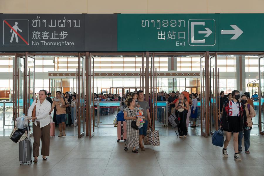 Passengers leave the Vientiane Station of the China-Laos Railway in Vientiane, Laos, Dec. 2, 2024. (Photo by Kaikeo Saiyasane/Xinhua)