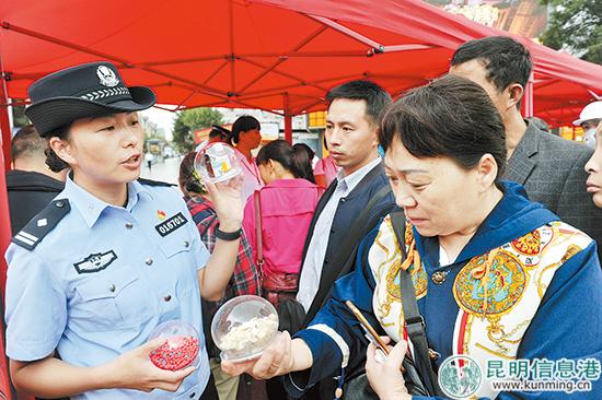 五華區(qū)民警教市民如何識(shí)別毒品。記者劉凱達(dá)/攝