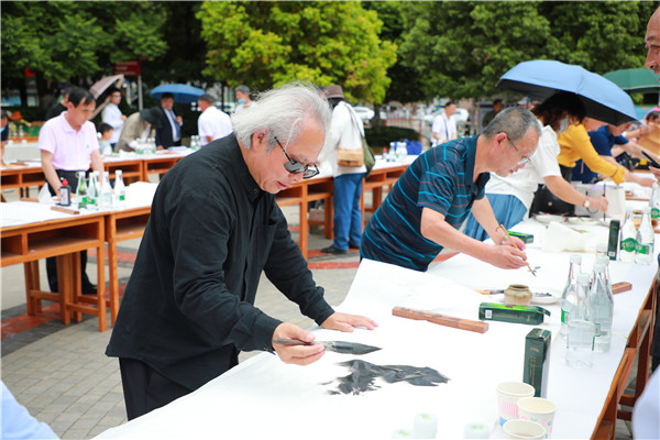 昆明信息港訊 記者勞學(xué)麗 7月13日下午,“春城職工文體嘉年華”系列活動——“丹青書盛世,翰墨頌黨恩”慶祝中國共產(chǎn)黨成立100周年昆明市職工“百人書畫展示”“百幅書畫展覽”在工人文化宮隆重舉辦。本次活動由昆明市總工會主辦,昆明市工人文化宮、昆明書法家協(xié)會、昆明美術(shù)家協(xié)會、中國詩書畫研究會云南藝術(shù)宮聯(lián)合承辦,云南行知探索體育文旅產(chǎn)業(yè)有限公司策劃運營。