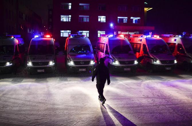↑吉林省長春市公安局民警走向巡邏車輛,準(zhǔn)備出發(fā)執(zhí)行夜巡任務(wù)(2021年1月6日攝)。