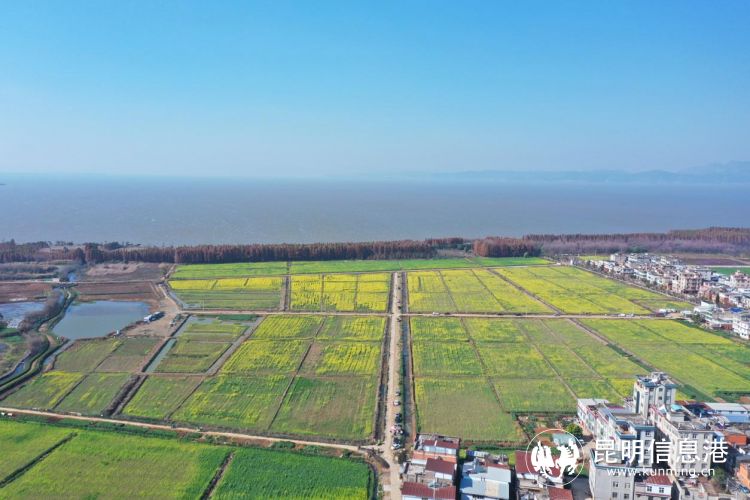 昆明信息港訊 記者段佳琪 通訊員趙娟 近日,在滇池東岸的昆明市呈貢區(qū)的江尾村,800畝油菜花競(jìng)相開放,金黃色的花海裝點(diǎn)著滇池岸邊,成片的花海隨著微風(fēng)輕輕翻動(dòng),在陽(yáng)光下金光閃閃,呈現(xiàn)出一幅迷人的金色畫卷。