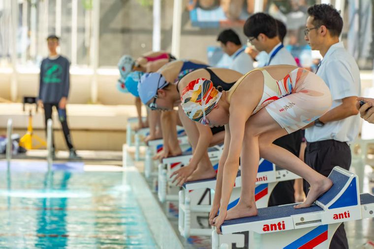 本次比賽分為小學組、初中組和高中組,設置了自由泳、仰泳、蛙泳、蝶泳、個人混合泳及接力等多個項目。比賽采用世界泳聯(lián)最新競賽規(guī)則,并引入智能檢錄系統(tǒng)、AI語音播報和數(shù)智半自動計時裝置,確保賽事公平、公正、高效。參賽選手通過“數(shù)智賽事通”小程序可實時查看檢錄進度,家長和教練也能第一時間獲取比賽信息。