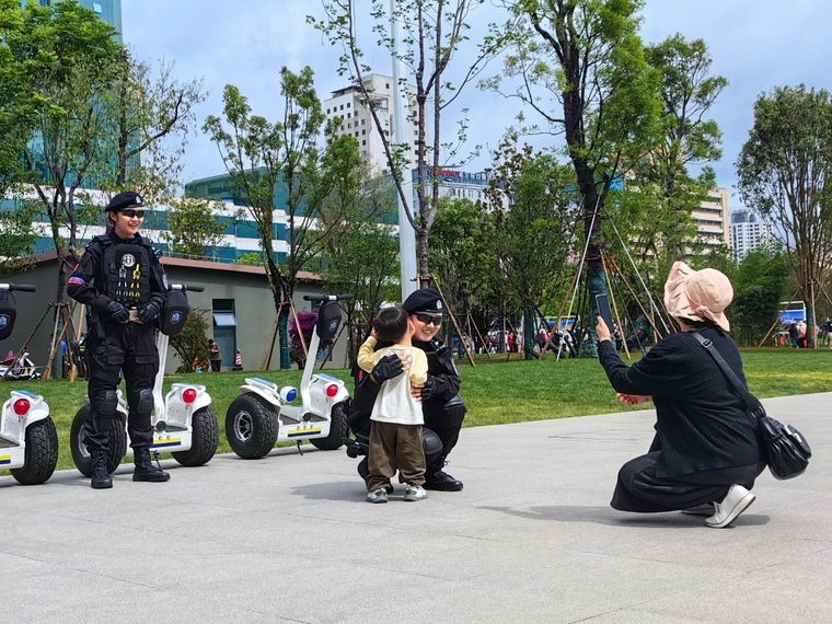 絢爛花海與執(zhí)勤民警的身影構(gòu)成獨(dú)特風(fēng)景。與群眾合影時(shí)的溫暖笑容,守護(hù)平安時(shí)的堅(jiān)毅背影,提供幫助時(shí)的親切話(huà)語(yǔ)以及相遇時(shí)發(fā)自?xún)?nèi)心的微笑,共同繪就了廣場(chǎng)開(kāi)放首日最溫暖的畫(huà)面。安全,是“云南生活”最堅(jiān)實(shí)的底色;守護(hù),讓這份向往更加真實(shí)可感。