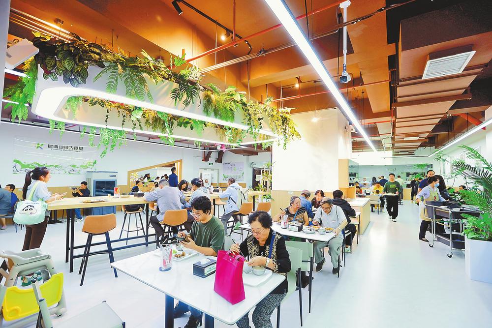 日前,昆明地鐵大食堂首家城市食堂在昆明地鐵火車北站開(kāi)業(yè),整潔的環(huán)境與智能化就餐系統(tǒng)給人們帶來(lái)良好的就餐體驗(yàn),10元兩葷兩素的惠民套餐受到歡迎。未來(lái)2年,這樣的便民食堂將覆蓋昆明主城區(qū),讓更多市民享受到“地鐵+民生”的服務(wù)便利。本報(bào)記者 高吳雙 攝