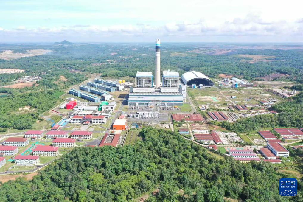 這是2023年10月5日在印度尼西亞南蘇門答臘省麻拉埃寧縣拍攝的華電(印尼)玻雅發(fā)電公司鳥瞰圖。新華社發(fā)