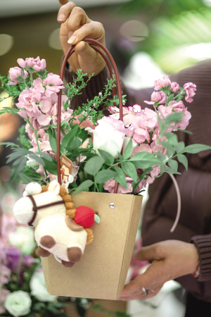 “繽紛花誠”像迷你花卉超市,品類齊全、價格親民;“時時刻刻”是一家精致花坊,每束花都如精心包裝的禮物;“禾莞”被干花與花瓣制品裝點成童話工坊;“Logaloga&植荒”則充滿奇趣,植物造型的情緒玩偶令人會心一笑。