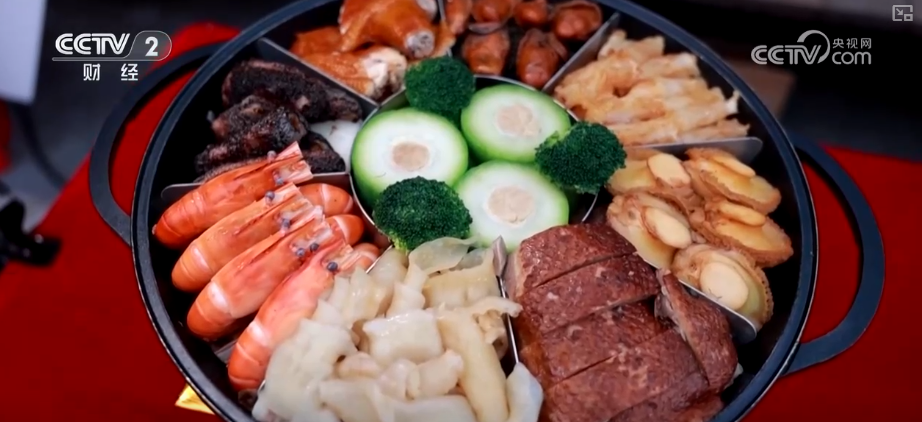 吉市一開,熱氣騰騰的年味便撲面而來(lái)。美食區(qū)里,寓意“團(tuán)團(tuán)圓圓”的盆菜禮盒、豐盛的九大簋,這些承載著記憶的傳統(tǒng)佳肴率先吸引食客目光。