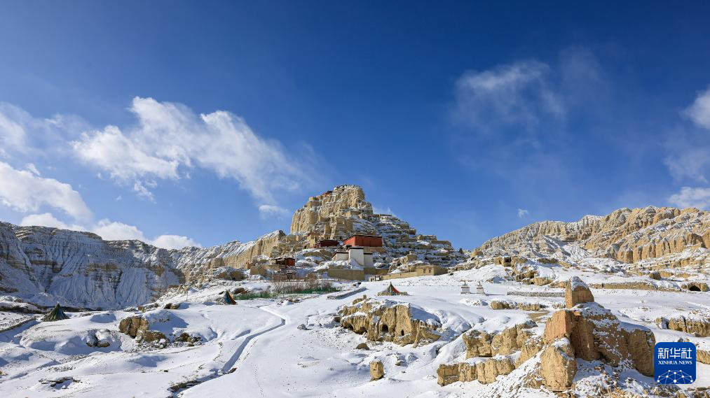 1月24日,西藏阿里地區(qū)札達縣迎來降雪,全國重點文物保護單位古格王國遺址披上銀裝,呈現(xiàn)壯美雪景。(新華社 旦真次旦攝)