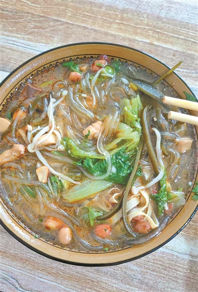 這家店的氛圍也如它的店名般接地氣,面積不大,只有六七張桌子。用餐高峰時,工人、阿姨、學(xué)生自然地拼桌坐在一起。店主是一對胖胖的、笑容憨厚的夫妻,見到燕婷進店會親切地問候:“今天沒課啦?”小店的好處是,老板會記得熟客的習(xí)慣,能把大家都照料周全,甚至?xí)o獨自吃飯看劇的顧客遞上一個手機支架。當(dāng)然,比麻辣燙更“香”的還有價格。燕婷稱自己現(xiàn)在還是學(xué)生,“十元錢出頭就能吃得很滿足,物有所值”。