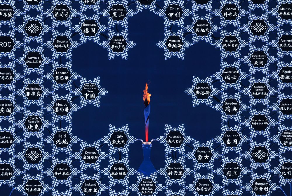 北京冬奧會(huì)開(kāi)幕式“飛揚(yáng)”火炬嵌入雪花臺(tái)