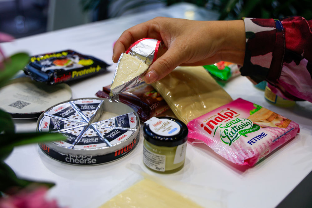 這是2025年11月9日在第八屆進(jìn)博會(huì)農(nóng)食產(chǎn)品展區(qū)拍攝的意大利伊納爾皮集團(tuán)(Inalpi)的奶酪和黃油。