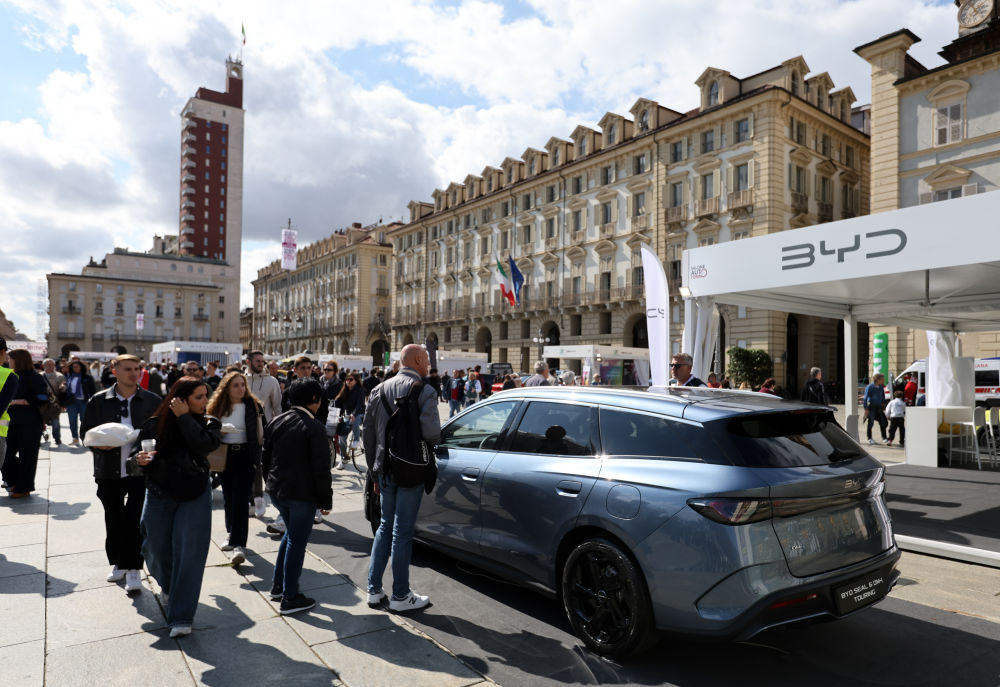2025年9月27日,人們?cè)?025年都靈車展上參觀比亞迪汽車展區(qū)。在2025年都靈車展上,中國(guó)汽車品牌備受矚目,共有17家中國(guó)汽車企業(yè)攜新車型參展,約占總參展商數(shù)量的三分之一。