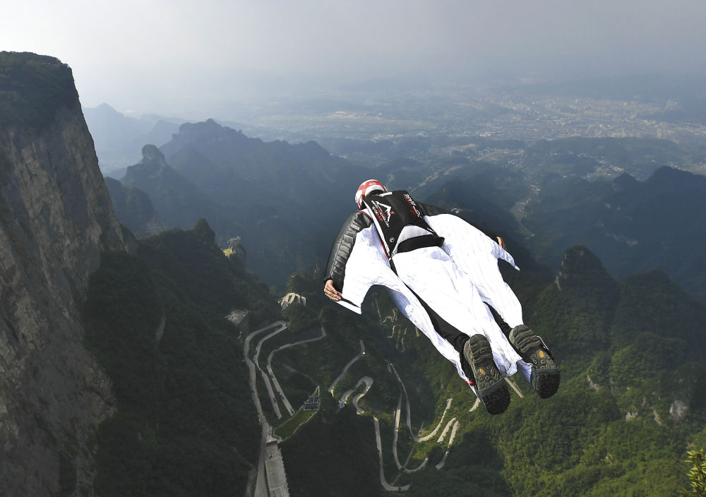 2019年9月4日,意大利選手盧卡·巴爾維里在張家界天門(mén)山進(jìn)行第八屆翼裝飛行世界錦標(biāo)賽試飛。